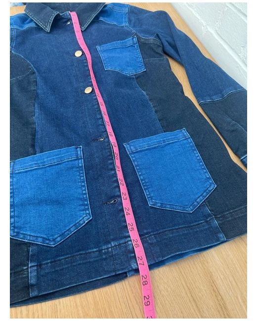 Women's Blue Denim Jacket Patchwork Style Buttoned Small