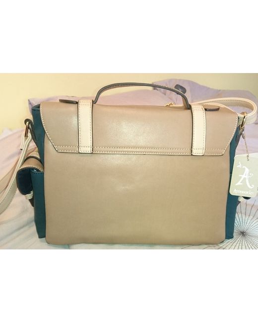 Hi This is a smart dark green and beige colour block satchel from the Monsoon Accessorize Leila range Medium sized 35cmx23cm Faux leather Push lock fastening Adjustable shoulder strap Inside zip pocket mobile phone holder Two outer side pockets Outer large pocket In perfect condition Brand new with tags From a pet and smoke free house Please check out my other items