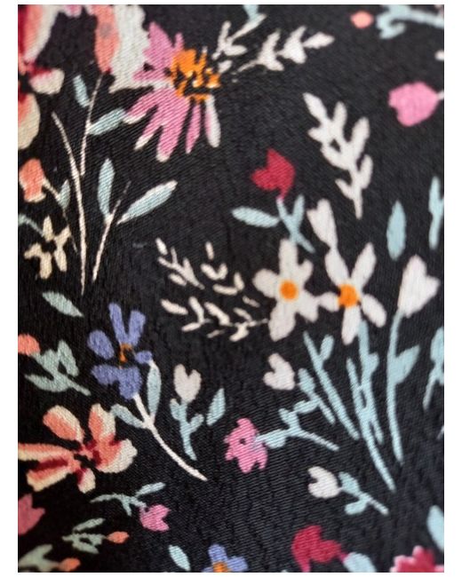 Monsoon Blouse Size 10 Unworn. A pretty blouse with short sleeves and lace panel on the front. Back fastens with a button. Multi floral print on a black background. Delicate machine wash.