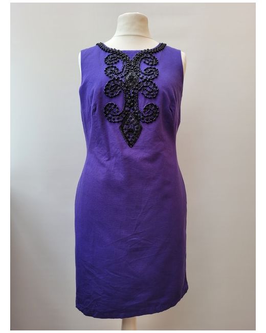 Women's Purple Beaded Shift Wedding Guest Elegant Party Dress UK14 NEW