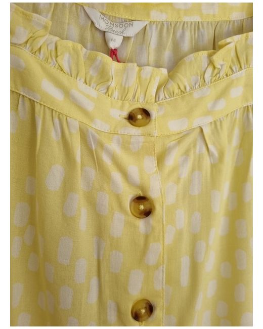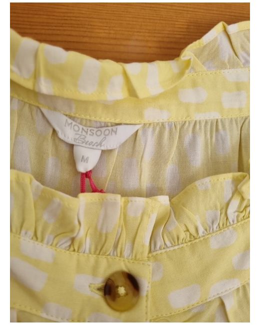 Elevate your wardrobe with this stunning Monsoon top, available in a vibrant yellow hue. Featuring short sleeves and a regular fit, this blouse is perfect for any occasion. The top is made from high-quality materials and is guaranteed to be in pristine condition upon arrival. The top is a medium size and is suitable for women. It is ideal for those looking for a stylish and comfortable addition to their wardrobe. This Monsoon top is perfect for pairing with trousers or skirts, making it a versatile option for both casual and formal events. Order now and add a touch of elegance to your wardrobe!