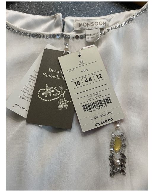 New Monsoon ivory top size 16. Hand embellishment, sequin neckline & down sides, pearls, yellow jewels & silver beads & sequins , pearl beaded back , fully lined , nice alone or under jacket etc. excellent gift 🎁 RRP £69.00