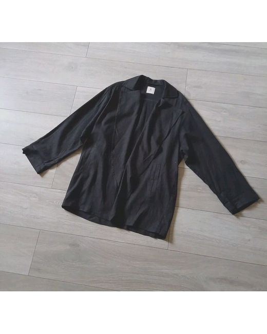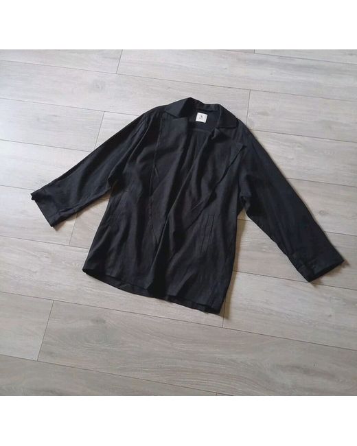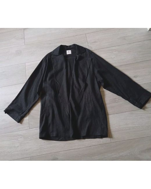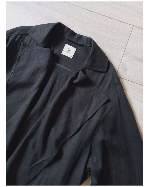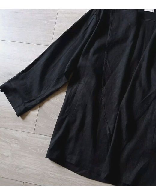Open front, shawl/waterfall collar, long to 3/4 tab sleeves, unlined, side pockets, relaxed/oversized fit.