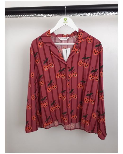 X1 TU pyjamas size M red stripe pumpkin print viscose button down long sleeve top SAMPLE. - x1 TU pyjamas size M red stripe pumpkin print viscose elastic waist wide leg bottoms SAMPLE. Kids Footwear.