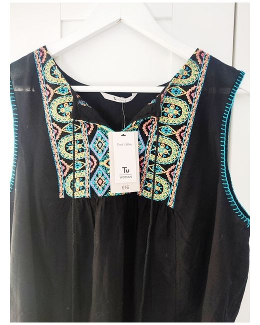 This BNWT black top with pretty detail to the top from TU is a stylish and versatile addition to any woman's wardrobe. The sleeveless design and regular fit make it perfect for a variety of occasions, while the cotton material ensures easy care and durability. The classic black colour adds a touch of sophistication, while the size 18 caters to a range of body types. Perfect for pairing with trousers or a skirt. BNWT