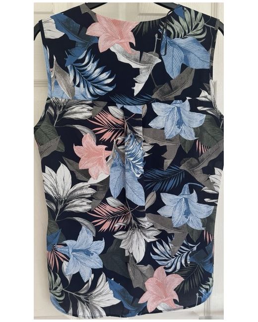 Womens Blouse Top 20 Inky Print Sleeveless Layered Sheer Gathered