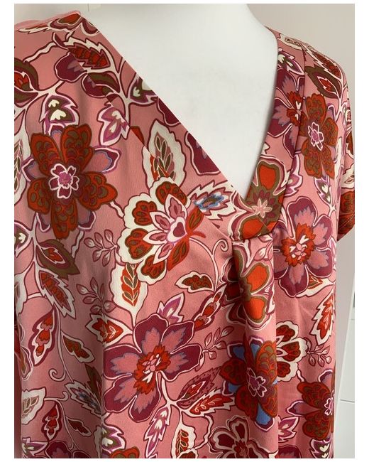 A lovely floral blouse by TU of Sainsbury’s. The front has a silky feel to it the back is plain. The back is longer than the front. A nice V neck and really lovely bright colours. The chest measurement from pit to pit is approx 24 inches - bit difficult to measure as they are a sort of short bat wing style. The length of the top is 28 inches at the front and longer at the back - it is designed to be worn outside loosely. BNWT original price was £14