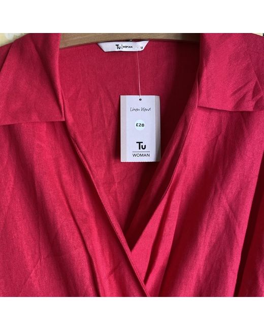 This beautiful wrap dress from Tu is a must-have for any wardrobe. The V-neckline and tie closure add a touch of elegance, while the linen blend fabric keeps it casual and comfortable. Perfect for any occasion, whether you're travelling, at work or just enjoying a casual day out. The dress comes in a lovely pink colour and is a midi length, making it ideal for the summer and spring seasons. The dress is available in size 18, which is a regular fit for women. The style of the dress is a wrap dress, which is perfect for adding a touch of sophistication to any outfit. The dress is part of the clothes, shoes & accessories category and is listed under women's clothing and dresses.