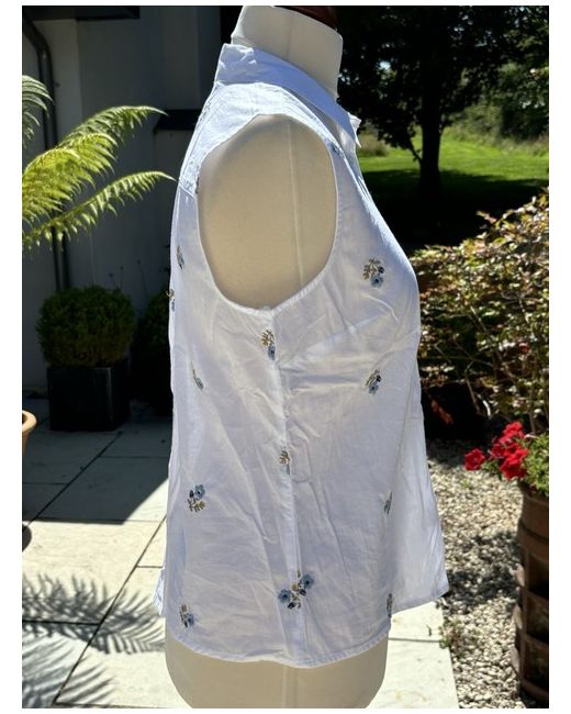Women's Floral Sleeveless cool button through white summer blouse 16