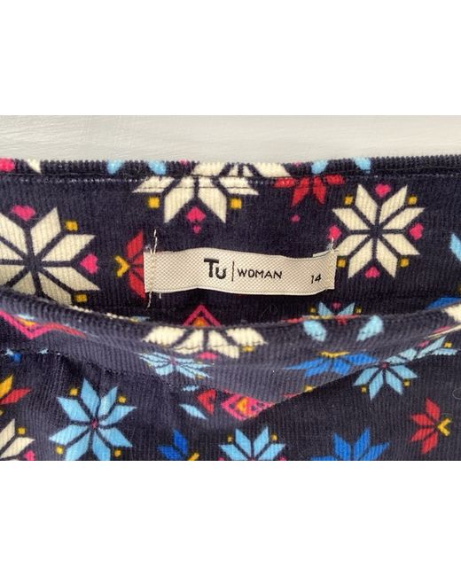 Gorgeous new TU skirt in a size 14. It's made from a fine cotton corduroy fabric with a navy background and multicolour pattern and is an a line style with a neat side zip and pockets.
