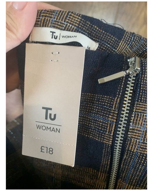 BNWT TU Front Zip Mini Skirt Size 14 Blue Checkered Pattern RRP £18.
