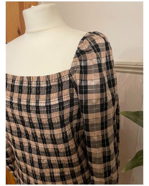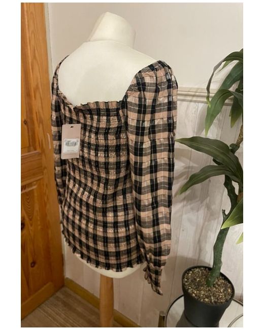 BNWT Sz 16 Gingham Checked Shirred Elasticated Top Blouse