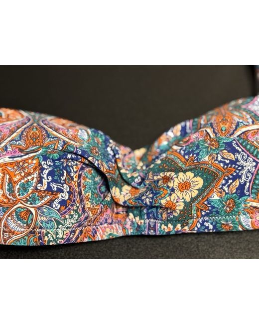 This is a new women's bikini top from the brand Tu in a size 6. The top features a multicoloured design, suitable for regular size wearers. Perfect for beach or pool outings, this swimwear item is a stylish addition to any summer wardrobe.