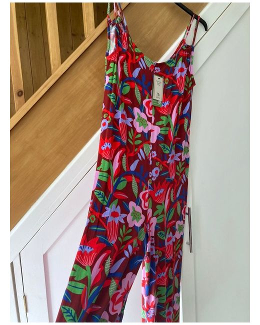 Women's Floral 12 Multicoloured Playsuit Play Suit Red Blue Retro Wide Leg NEW