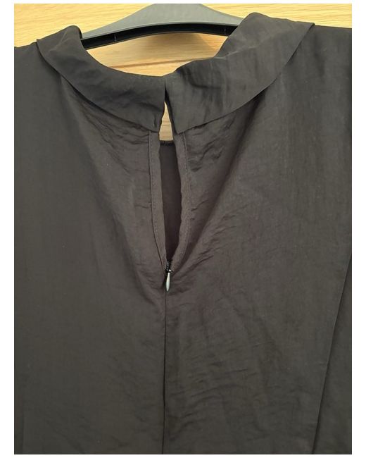 The solid black hue ensures easy pairing with any skirt or trousers, while the subtle button and zip accents at the back add a touch of elegance.