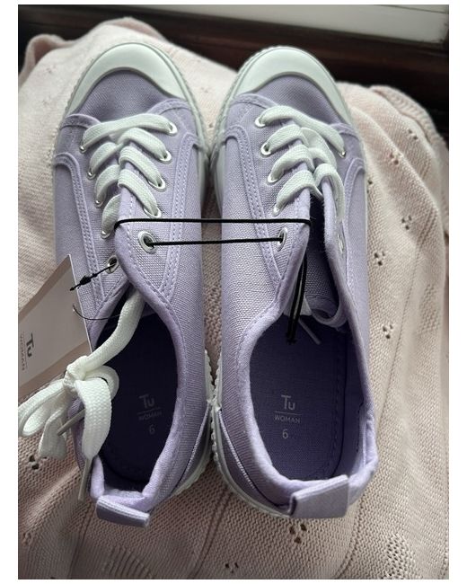 These lavender Tu flat shoes are designed for women in a UK size 6. They are crafted from synthetic material, making them durable and easy to maintain. With a simple and versatile flat style, these shoes offer comfort and a sleek look that can be easily paired with various outfits. Perfect for everyday wear, these new shoes are a stylish addition to any woman's wardrobe.