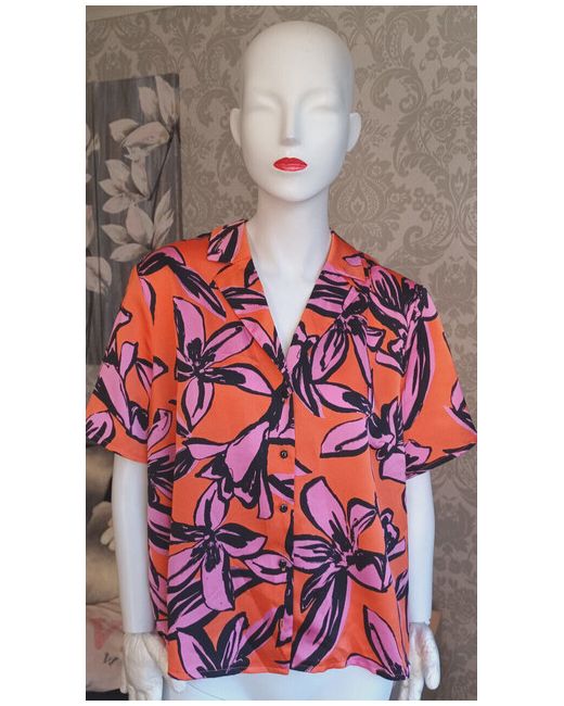 Add a pop of colour to your wardrobe with this TU Orange Mix Floral Blouse with a low v.neck.. The vibrant floral pattern and collared neckline make it perfect for a casual day out or a night on the town. The short sleeves and button closure add a touch of elegance, while the polyester material ensures comfort throughout the day. This blouse comes in a size 16 and has a regular fit. Ideal for the spring and summer seasons, it's perfect for any woman looking to add a stylish touch to their outfit........THANKS FOR VIEWING........