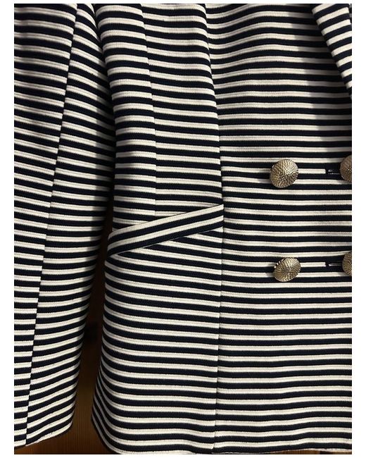 New Navy White Horizontal Stripe 80 Cotton 20 Linen jacket 10