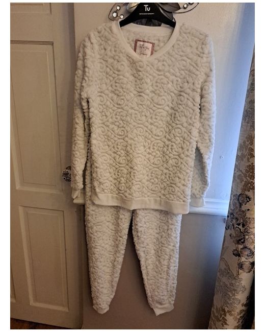 Lovely Tu pyjama/lounge set in white embossed material bought for me but put weight on so don't fit. Very soft and comfortable material , Size 8