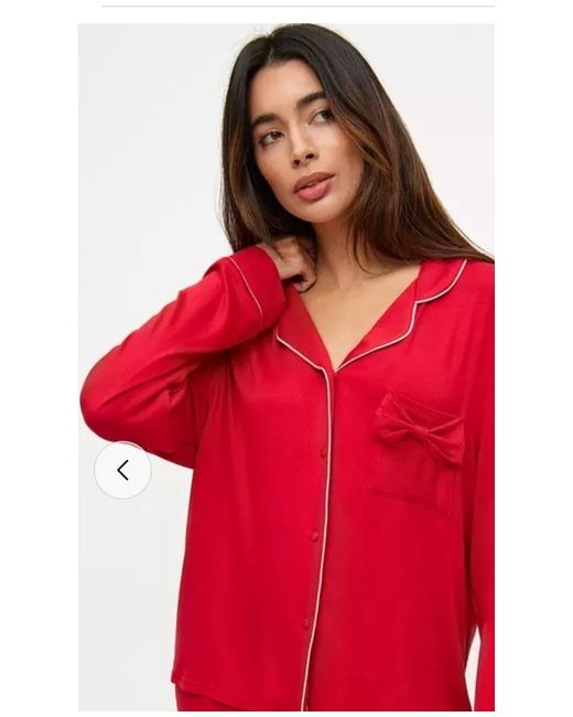 Bought to wear Christmas Eve to match with Daughter but i only wore the pants for a few hours and the top hasnt been worn at all. Size Medium so a 12-14 Still in store now. This TU Red Bow Pocket Pyjamas set is brand new without tags and designed for women. The kaftan-style pyjama set features a red colour with a cute bow accent. Made from polyester, this pyjama set includes a top with a pocket detail, offering comfort and style for bedtime. Ideal for regular-sized women, this M-sized pyjama set adds a touch of charm to your nightwear collection.