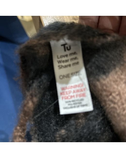 This TU large scarf is made of polyester in a knit fabric type, featuring a multicoloured design. It is a women's accessory suitable for adding a stylish touch to various outfits. Brown black blue animal print