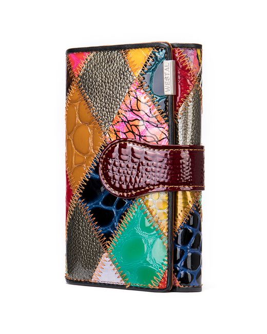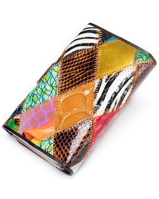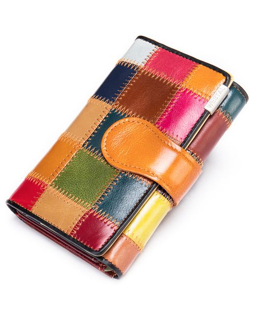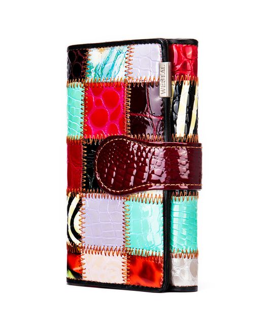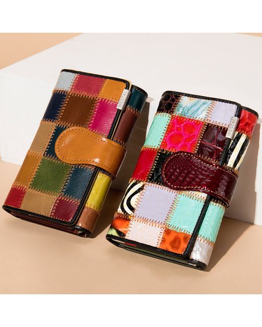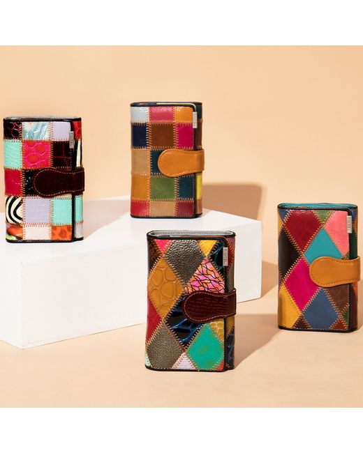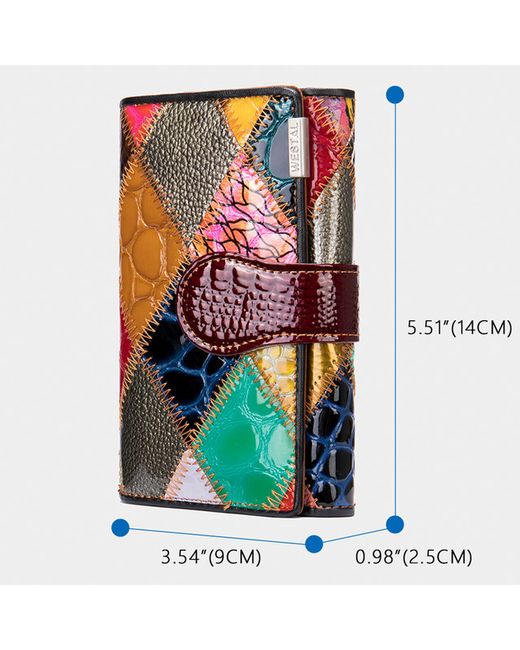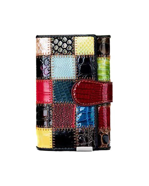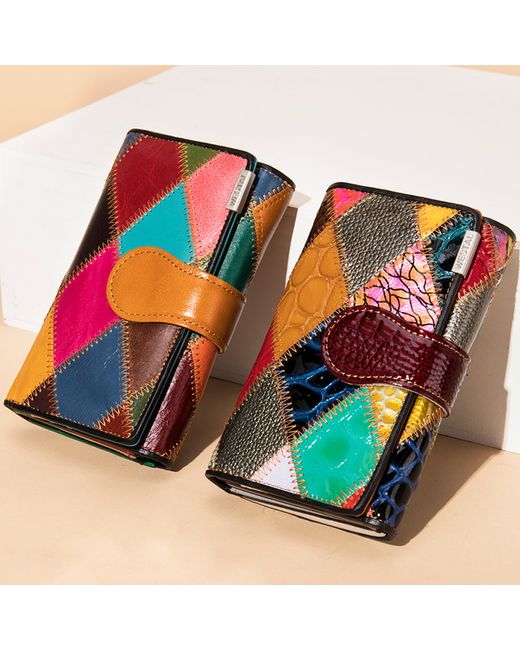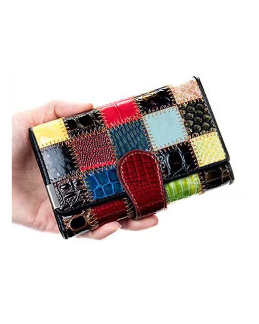 Women's Multicolor Genuine Leather Wallet Patchwork Multi-Function Purse Multi-Card Holder