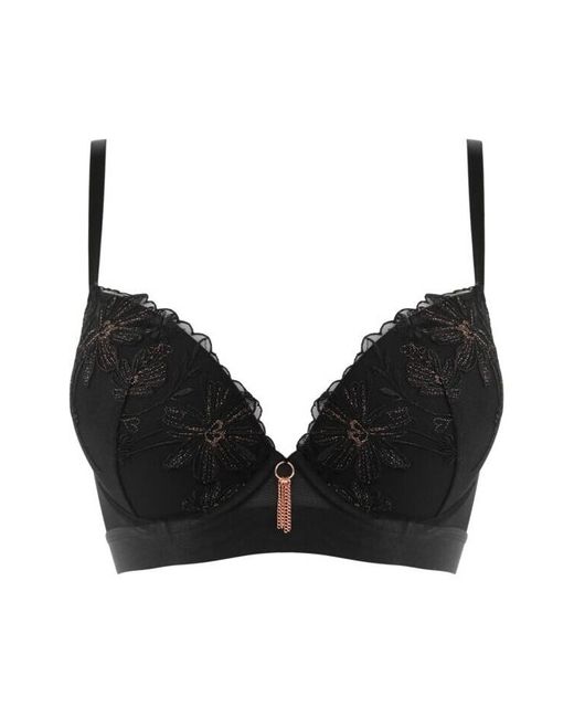 Graduated padded push-up cup. Wide satin elastic underband for extra support. Luxe rose gold hardware. Hook-and-eye fastening.