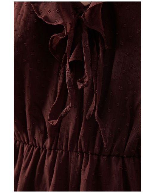 Women's Brown Casual Jumpsuit Chocolate Dobby Chiffon Ruffle Wide Leg