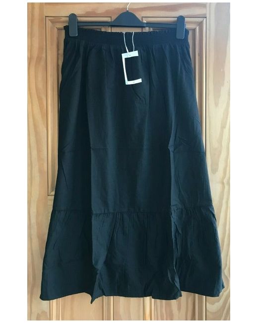 Women's Black BRAND NEW Panelled Elasticated Midi Cotton Skirt 6 8