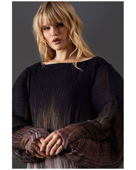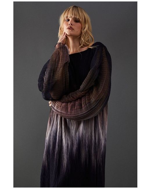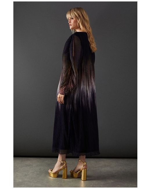 The voluminous batwing sleeves provide a dramatic flair, balancing perfectly with the sleek midi length. WAREHOUSE Ombre Plisse Batwing Midi Dress.