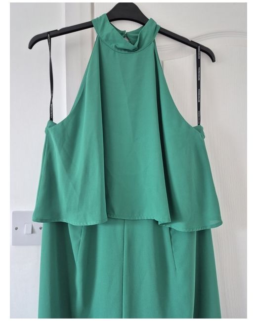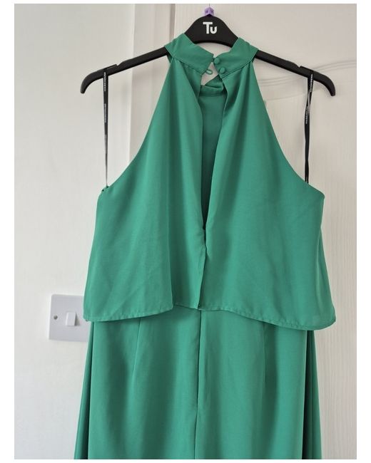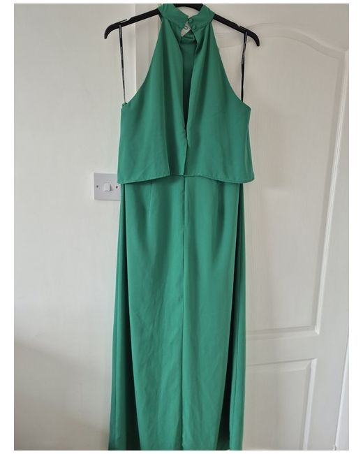 Elevate your wardrobe with this elegant green halterneck maxi dress from Warehouse, a perfect blend of style and comfort for the spring and summer seasons. The sleeveless design, combined with its fluid chiffon fabric, offers a graceful flow as you move, making it ideal for parties, cocktail events, or weddings. The dress features a striking front split, adding a touch of sophistication and modern flair to the classic halterneck style. Available in size 16, this garment caters to a regular fit and is designed to flatter a variety of body types. The solid green hue allows for versatile accessory choices, ensuring you look stunning at any event.