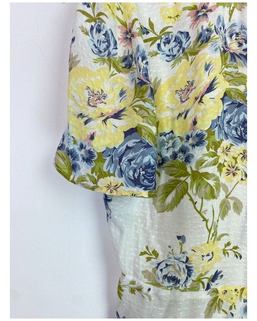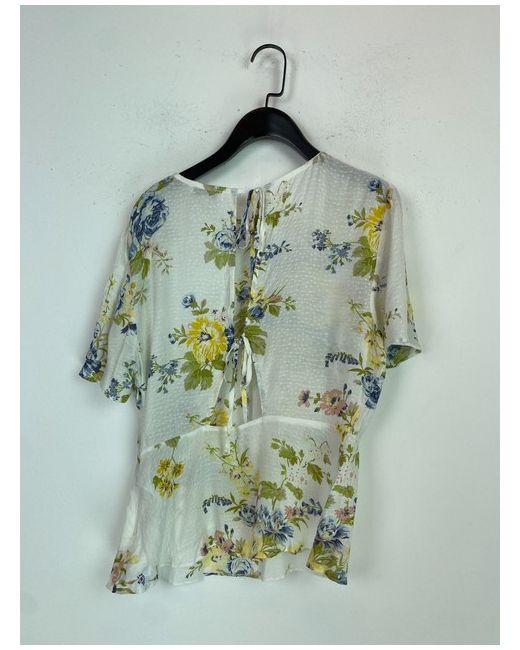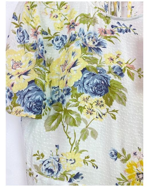 Floral White Textured Blouse Round Neck Short Sleeve UK 12 NEW