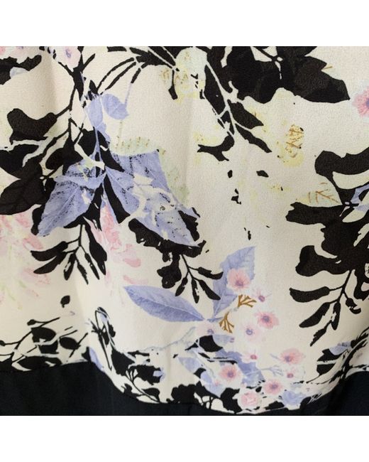 Warehouse Top Black & ivory White Uk 16 Just one of those lovely tops everyone needs in wardrobe , suits all seasons , lots of occasions from formal , semi formal , smart casual and nights out Great look worn with black trousers or jeans Light for holiday suitcase , very good quality unlined polyester so hardly creases if at all Floral pattern with pretty colours New , unworn but size 16 neck label cut out Pit to pit 21 ins Length 28 ins ( centre back ) Slightly shorter at front approx 24 ins Pull on over head and concealed button fastening on front V Thanks
