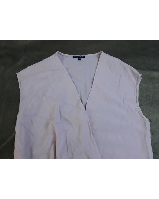 A relaxed fit sleeveless Warehouse blouse in a lovely shade of shell pink.The front has a cross over draped fit with a dipped hemline,the back is plain.The fabric is drapey with an ultra fine crinkle woven in.