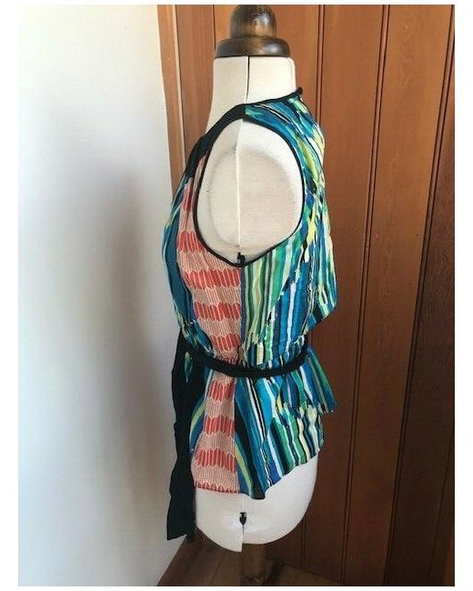 Warehouse funky bold stripe camisole top cotton, with belt and elastic at back and open area at back very striking uk 6.