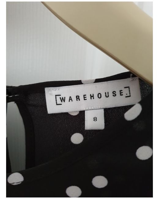 Warehouse Black Polka Dot Top Size 8.