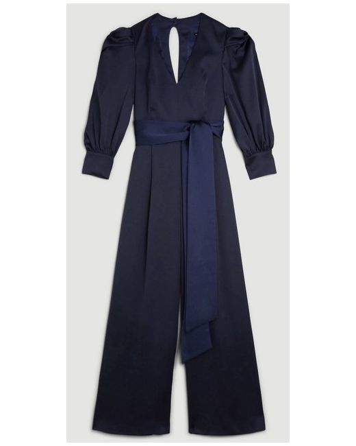 BNWT Soft Satin Back Crepe Statement Sleeve Jumpsuit Navy Size 10 RRP £229