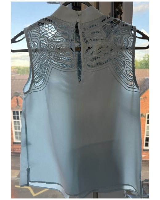 Elevate your wardrobe with this stunning Karen Millen top in a beautiful shade of blue. This sleeveless blouse is perfect for any casual occasion and features a flattering fit that will enhance your curves. The blouse is crafted from high-quality viscose material that is both comfortable and durable. The basic style of this top is given a modern twist with the addition of the Karen Millen brand, making it a unique piece that will stand out in your collection. This top is available in a size 6 and is suitable for women of all ages. Add this blouse to your collection today and enjoy the versatility and style it offers.