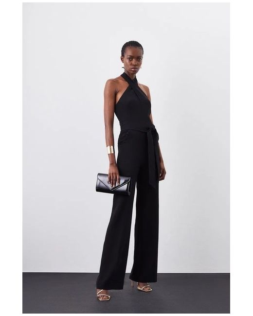 KAREN MILLENStructured Crepe Wrap Drape Detail Jumpsuit