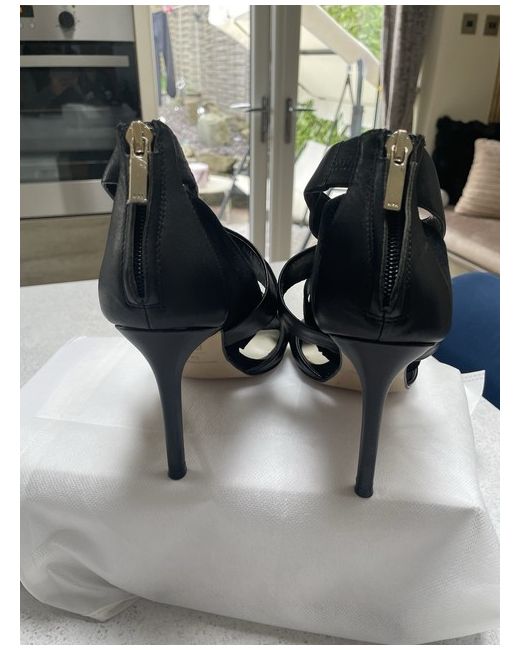 Karen Millen black scrappy sandals unworn. Beautiful style with knotted detail to front and gold zip detail to the back.