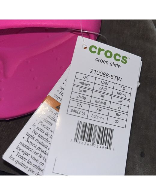 The Crocs Women's Lightweight Sliders are a stylish and comfortable choice for women in UK size 6. Made from 100% Thermoplastic material, these pink crush sliders feature a regular fit and a heel height of 0 inches. Perfect for casual wear, these sandals are a trendy addition to any wardrobe, offering both style and comfort in one versatile design. Bought wrong size for mum. Delivered in this bag rather than a box. Never worn.
