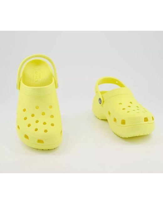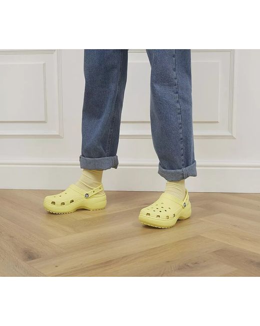 Crocs classic clog featuring the classic platform; the shade is “Banana”; heel height is 2” and they are a UK size 5.