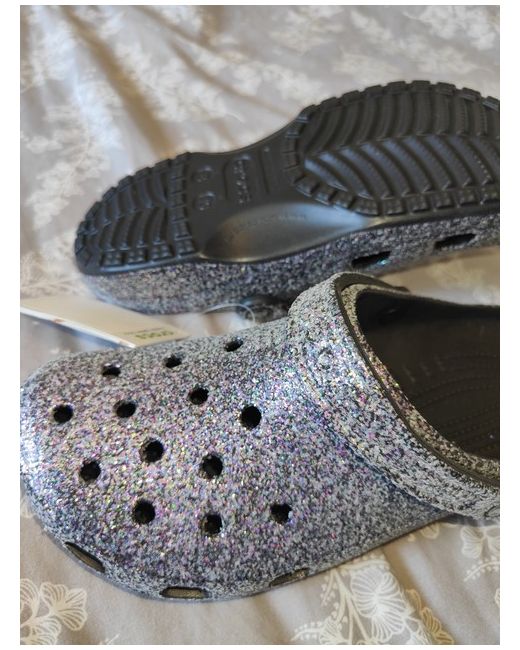 Brand new never worn glitter crocs. Size on the crocs is M8/W10. I'm normally a size 9UK and they fit me.