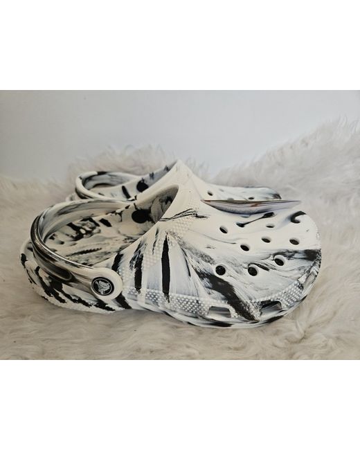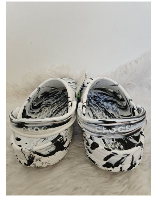 Crocs Classic Marbled Clogs White/Black. Crocs lightweight clogs providing comfort and support while the ventilation holes can be customised with charms for a fun personal look. Product Detail Synthetic upper and lining.