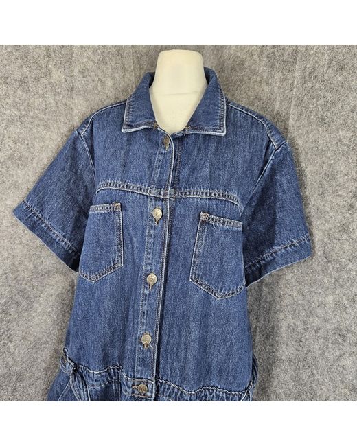 100% cotton denim. Belted (can be worn without) has pockets. Size 20 long / tall. Inseam 30". Sleeve length: 8". Waist: 22".