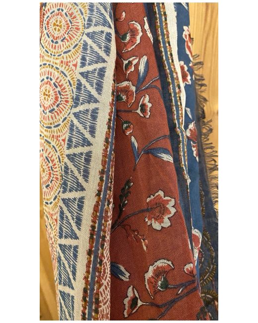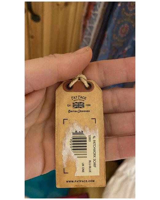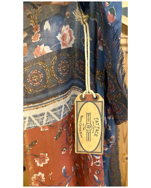 "Patchwork" Design in Blue & Red. FAT FACE LADIES SCARF. Beautiful material and scarf as you would expect from Fatface.