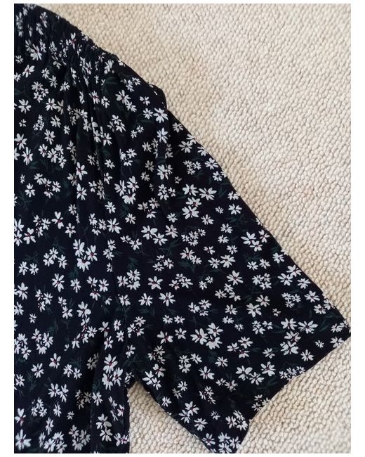 Completely unworn, a pretty Fat Face longline top/tunic with short sleeves and V neckline. Made from viscose jersey featuring an elasticated waistline at the back for a neat fit and subtle ruched detailing at shoulders. There is a seam detail under the bustling at the front. A pretty ditsy daisy pattern on a black background.