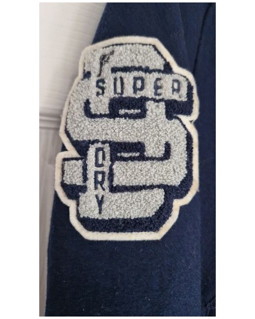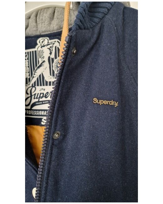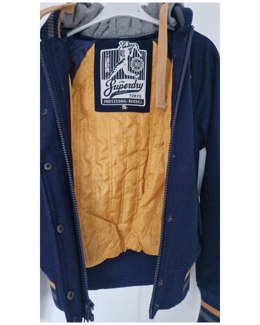 This is a navy Superdry Women's Baseball Jacket in size S. It is a mid-length vintage style jacket, perfect for casual occasions. Selling due to moving