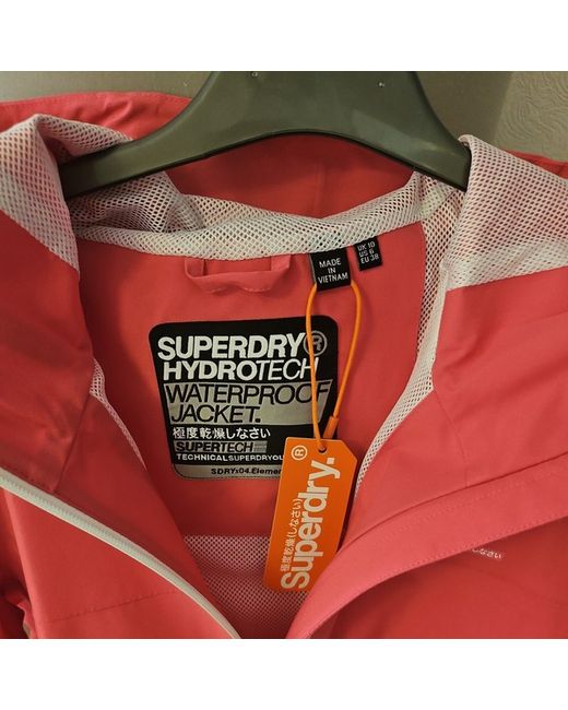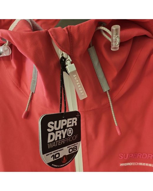 a really nice looking coat. looks like it would be very waterproof. unfortunately, for me being only 5'2, it is too long but for anyone taller looking for a lightweight waterproof jacket, this could be the one. branded Superdry. Basic zipped hand pockets, mesh lined with attached hood which is a good size. watertight zips. a good all-rounder for this time of year. size 10, brand new with tags. pink.