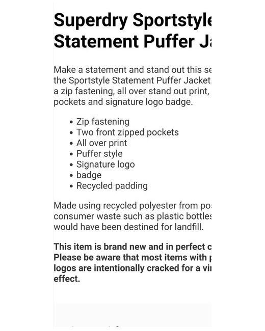 Superdry Womens Sportstyle Statement Puffer Jacket, size XL.